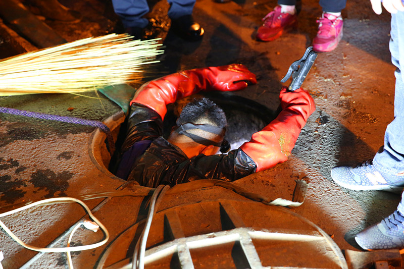 漏點(diǎn)冒出的水溫高達(dá)90℃,搶修人員掀起蓋板,用風(fēng)扇向人井內(nèi)吹風(fēng)降溫,隨后冒著被燙傷的危險(xiǎn)進(jìn)入人井中搶修,但由于伸縮器和管道都腐蝕嚴(yán)重,狹小的空間無(wú)法更換伸縮器。為了保障用戶的溫暖,用最快的速度排除故障,分公司領(lǐng)導(dǎo)決定破路開溝,擴(kuò)大作業(yè)面,于是及時(shí)調(diào)來(lái)的挖掘機(jī)一直挖到凌晨4點(diǎn)才拓展出一個(gè)能夠滿足施工要求的空間。